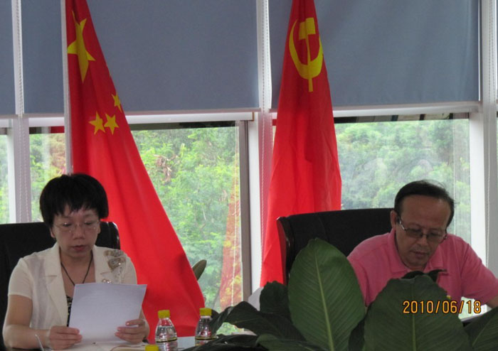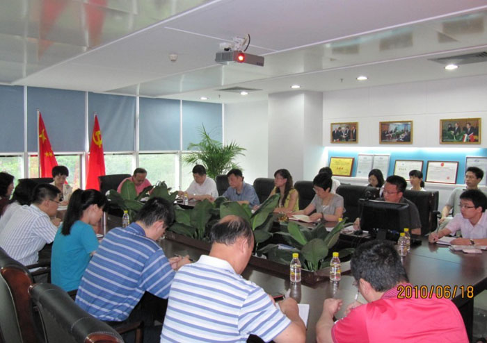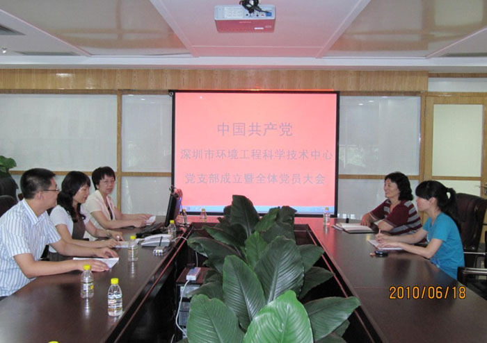 2010年6月18日在环科中心会议室召开中国共产党深圳市环境工程科学技术中心支部委员会成立暨全体党员大会。中心决策层领导也亲临现场表示热烈祝贺!大会传达了控股公司党委关于环科中心支部委员会成立批复文件及控股公司转发深圳市国资委《关于在国有企业开展争创“四强“党组织争做“四优”共产党员活动的通知》;会议听取了支部委员会副书记钟广华同志做第一届党支部近期工作报告及2010年下半年党支部工作计划,并对中心下半年开展争创“四优”四强“活动进行了动员与部署。