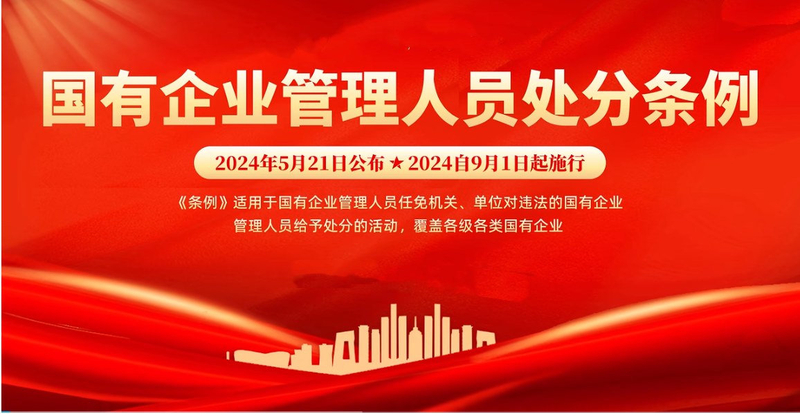 日前,《国有企业管理人员处分条例》正式公布(以下简称《条例》)。《条例》贯彻落实习近平总书记关于国有企业改革发展和党的建设重要论述,从法规层面对国有企业管理人员的处分事宜统一规范,为打造忠诚干净担当的国有企业管理人员队伍,推动国有企业高质量发展提供有力的法治保障。