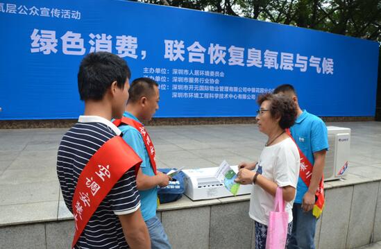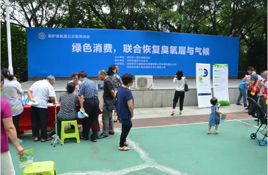 联合国环境规划署为今年的国际保护臭氧层日确定的主题是“臭氧与气候:世界联合方能恢复”,呼吁世界各国、社会各界按照“迪拜路径”削减温室气体HFCs(氢氟烃),联合起来恢复臭氧层和气候。为契合今年的主题,召集更多的相关方参与到保护臭氧层工作中来,深圳市人居环境委组织了近200名社区居民和十多家物业管理单位、制冷设备维修企业、《深圳特区报》等媒体一共300余人参与了本次宣传活动。活动组织人员向参会人员普及了保护臭氧层和气候变化知识,号召社区居民绿色消费和使用制冷设备、物业管理单位加强中央空调日常保养、制冷设备维修企业规范安装和维修制冷设备、社会各界在各自的工作和生活领域携手减少制冷剂的使用和泄漏,共同修复臭氧层和气候。在活动现场,获得深圳市2016年空调安装和维修技能大赛的前六名空调维修技师还通过实物展示向社区居民讲解怎样科学合理地挑选、安装、使用、保养、维修家用空调来减少对臭氧层和气候的破坏。