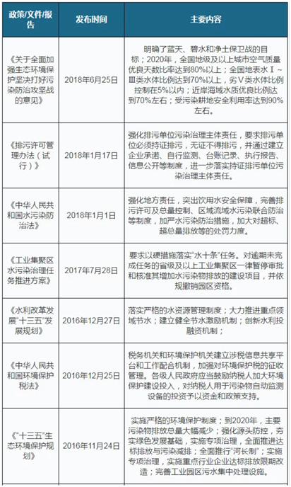 水处理是指通过一系列水处理设备,使用物理、化学、生物等手段,去除水中一些对生产、生活不需要的有害物质,为适用特定用途而对水进行的沉降、过滤、混凝、絮凝,以及缓蚀、阻垢等水质调理的过程。截止到“十二五”期末统计数据,我国“十二五”期间,用于废水处理的投资达4,500亿元;根据我国“十三五”废水治理行业规划,“十三五”时期的废水处理投资规模将达到13,922亿元,是“十二五”时期的三倍以上。