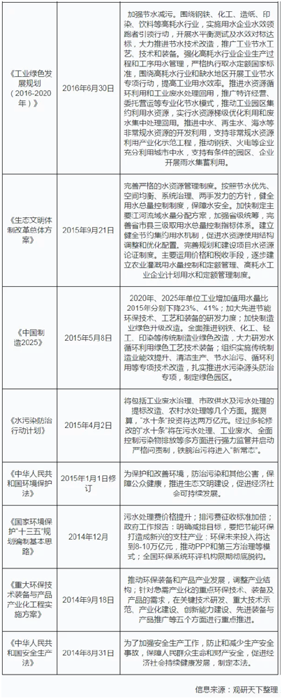就水环境污染来讲,大致可以分为点污染源、面污染源和内源污染三大来源,而工业污水是重要的污染点源。从2015年“水十条”要求提出后,工业污染源防治是作为水体污染防治的全盘任务之一在考虑,同时通过对工业企业进行约束,也倒逼其自身进行环境保护和升级改造。
