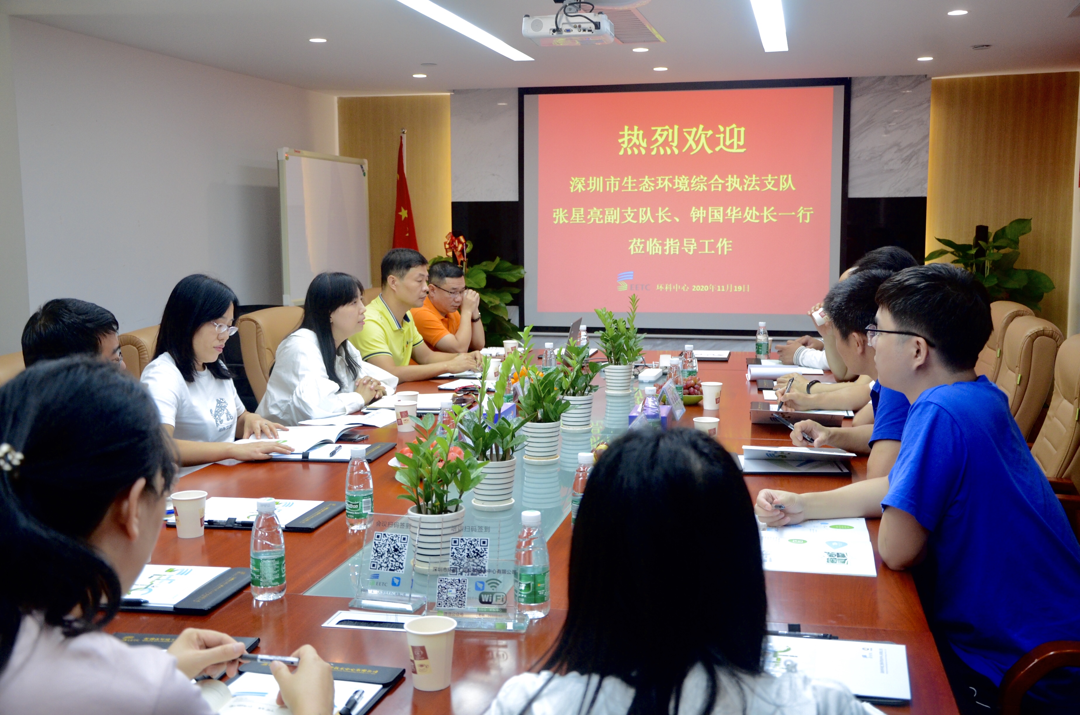 11月19日,市生态环境综合执法支队张星亮副支队长、钟国华处长率支部党员来到环科中心进行了现场工作交流,环科中心党支部陈马兴书记、单文君副书记、郭瑞霞副总经理,以及党员代表参加了本次活动。
