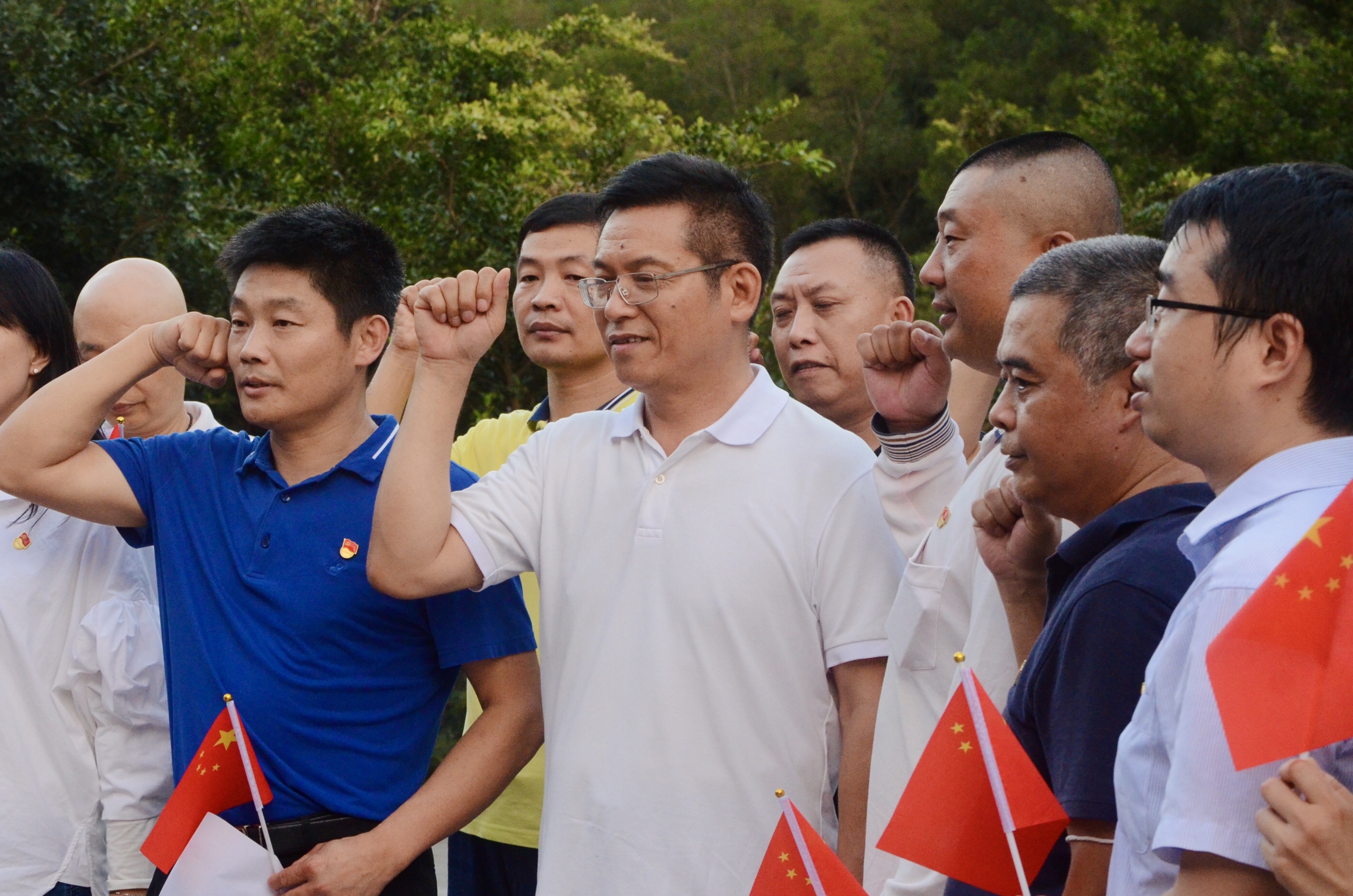 座谈会后,两支部的党员代表一同前往孙中山庚子首义雕塑园爱国主义教育基地,开展“追溯红色经典 重温革命情怀”主题活动。全体人员在园内重温了入党誓词并实地参观孙中山先生在盐田三洲田地区发动武装起义的相关雕塑作品,感受红色文化,使党员同志深刻体会革命先辈们矢志不渝的爱国奉献精神,引导党员同志爱党爱国,奋发有为,作不忘本源的坚持者与有志拼搏的践行者。