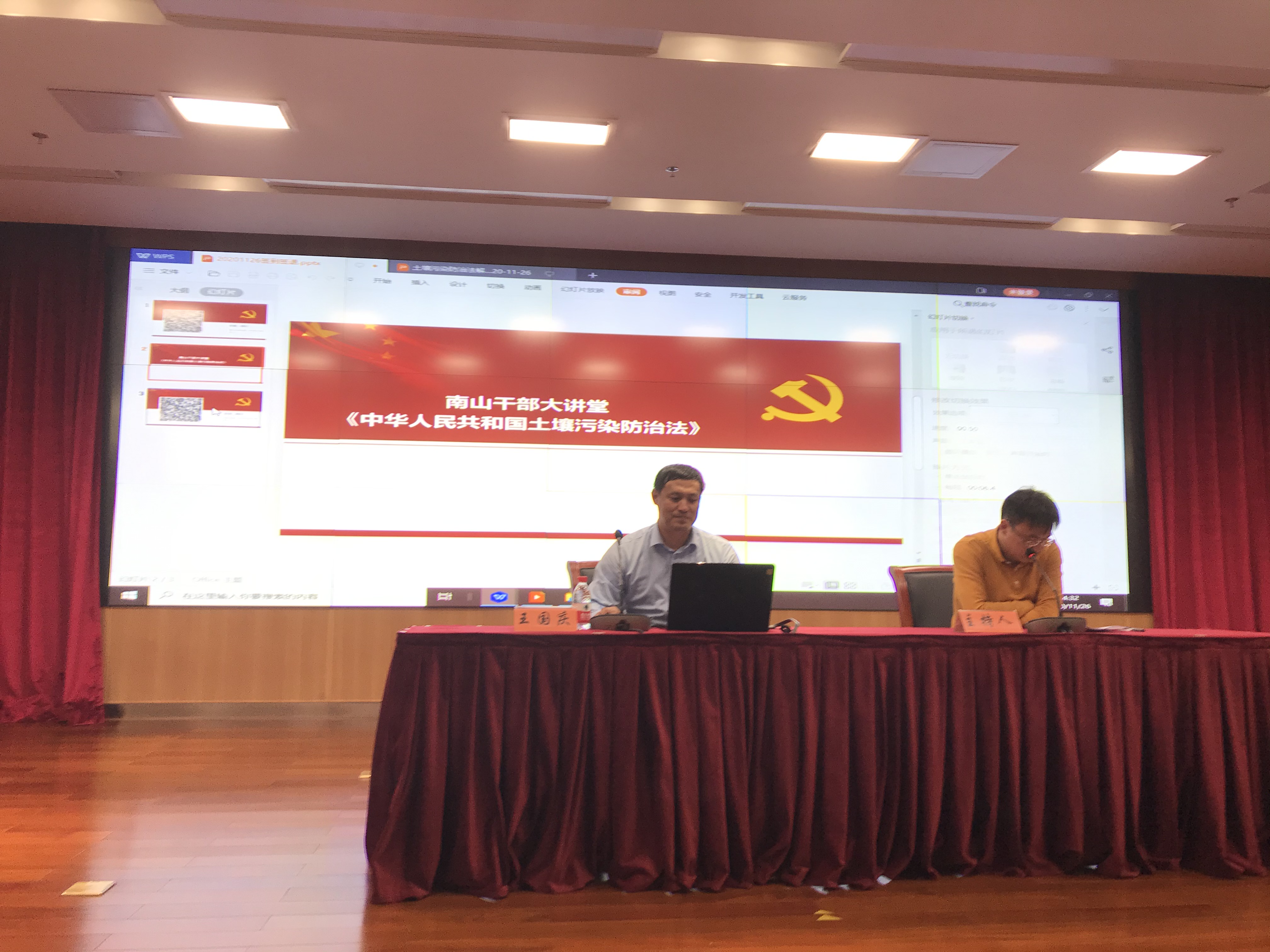 为了深入贯彻落实土壤环境保护工作,宣传土壤环境保护重要性,受市生态环境局南山管理局和南山区委组织部委托,我司承办了2020年南山干部大讲堂专题报告组织工作。2020年11月26日下午,我司特邀生态环境部南京环境研究所王国庆研究员,在南山区区委大楼报告厅开展了关于《土壤污染防治法》及相关法规标准体系解读专题报告会。市生态环境局南山管理局张洪铭副局长主持会议。