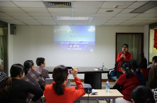 3月23日下午,环科中心志愿者和深物业集团志愿者联手走进龙华新区风和日丽小区,运用环保专业化技术知识,以贴近实际、贴近生活、贴近群众的方式,为该小区居民举办了一场“低碳环保、生态文明——健康时尚新生活”的讲座,大力倡导低碳、环保生活方式方法,讲解如何做到生活低碳、环保。活动深受小区广大居民的热烈欢迎和积极响应,他们表示要将学到的低碳知识应用于日常生活中。